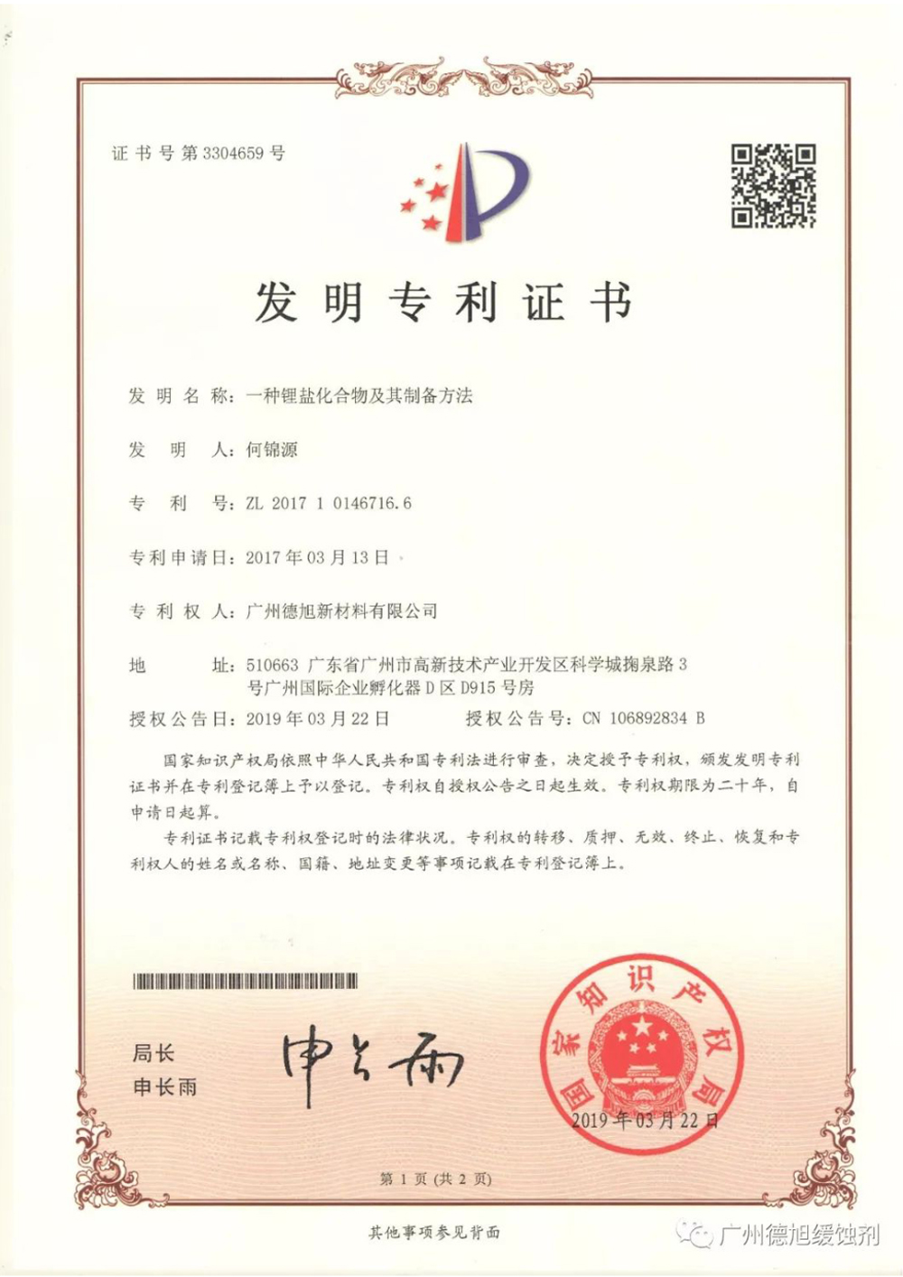 德旭新材料(广州)股份有限公司成立于2012年,坐落于国内新材料领域创新集聚区的广州高新技术产业开发区核心位置——广州科学城,是一家集研发、生产、销售于一体且拥有自主知识产权的专精特新企业。长期专注于金属材料的防腐蚀研究与创新,为汽车与船舶、航空航天、半导体及3C电子、新能源、水性防腐涂料等领域的金属防腐蚀提供产品和解决方案。同时也服务于工业润滑、金属表面处理、工业、商用和民用重油污清洗和益智玩具等行业。公司产品获得BASF(巴斯夫)、HP(惠普)、汉高、美泰、MOOSE、中国船舶、中国机械总院、安集、汇川、三环、晨光等国内外知名企业的青睐。